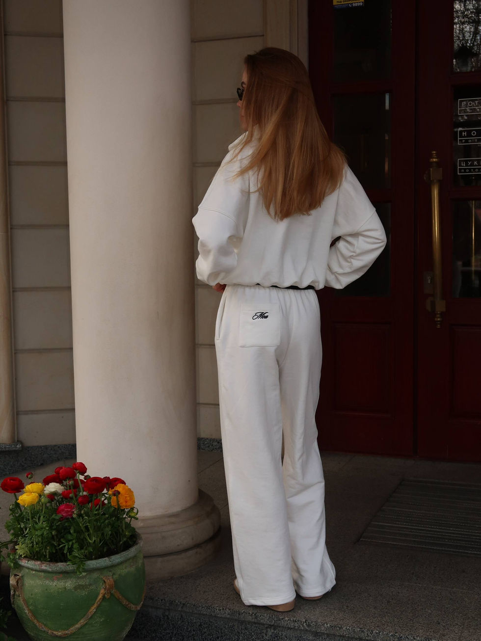 ▪️Штани-палаццо, які можна затягнути внизу в джогери. На талії акуратна резинка і є шнурки задля того, щоб можна було регулювати талію. Також вишито акуратне лого позаду на кармані.